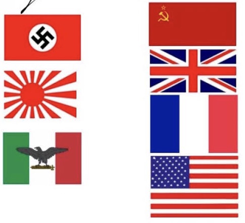 At the beginning of the Second World War, different countries formed two sides: Allied countries and Axis countries.